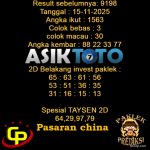 Prediksi Togel Asiktoto China 15 November 2025. adalah salah satu motode peracikan angka togel melalui rumus dari para master prediksi yang ada. Prediksi togel membantu para pecinta permainan togel untuk menebak angka result togel yang akan keluar PREDIKSI CHINA ASIKTOTO HARI INI Result sebelumnya: 9198 Tanggal : 15-11-2025 Angka ikut : 1563 Colok bebas […]