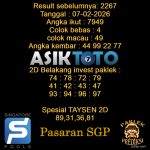 Prediksi Togel Asiktoto Singaporepools 07 Februari 2026. adalah salah satu motode peracikan angka togel melalui rumus dari para master prediksi yang ada. Prediksi togel membantu para pecinta permainan togel untuk menebak angka result togel yang akan keluar. PREDIKSI SINGAPORE ASIKTOTO HARI INI Result sebelumnya: 2267 Tanggal : 07-02-2026 Angka ikut : 7949 Colok bebas […]