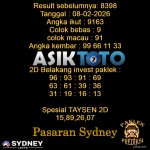Prediksi Togel Asiktoto Sydneylotto 08 Februari 2026. adalah salah satu motode peracikan angka togel melalui rumus dari para master prediksi yang ada. Prediksi togel membantu para pecinta permainan togel untuk menebak angka result togel yang akan keluar. PREDIKSI SYDNEY ASIKTOTO HARI INI Result sebelumnya: 8398 Tanggal : 08-02-2026 Angka ikut : 9163 Colok bebas […]
