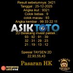 Prediksi Togel Asiktoto Hari Ini Hongkonglotto 25 Desember 2025. adalah salah satu motode peracikan angka togel melalui rumus dari para master prediksi yang ada. Prediksi togel membantu para pecinta permainan togel untuk menebak angka result togel yang akan keluar PREDIKSI HONGKONG ASIKTOTO HARI INI Result sebelumnya: 3421 Tanggal : 25-12-2025 Angka ikut : 9321 […]