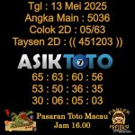 Prediksi Togel Asiktoto Toto Macau Jam 13.00 16 Mei 2025.