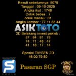 Prediksi Togel Asiktoto Singaporepools 09 Oktober 2025. adalah salah satu motode peracikan angka togel melalui rumus dari para master prediksi yang ada. Prediksi togel membantu para pecinta permainan togel untuk menebak angka result togel yang akan keluar. PREDIKSI SINGAPORE ASIKTOTO HARI INI Result sebelumnya: 8079 Tanggal : 09-10-2025 Angka ikut : 1748 Colok bebas […]