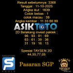 Prediksi Togel Asiktoto Singaporepools 11 Oktober 2025. adalah salah satu motode peracikan angka togel melalui rumus dari para master prediksi yang ada. Prediksi togel membantu para pecinta permainan togel untuk menebak angka result togel yang akan keluar. PREDIKSI SINGAPORE ASIKTOTO HARI INI Result sebelumnya: 3368 Tanggal : 11-10-2025 Angka ikut : 1639 Colok bebas […]