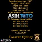 Prediksi Togel Asiktoto Sydneylotto 18 Oktober 2025.