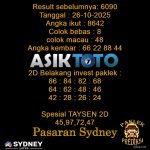 Prediksi Togel Asiktoto Sydneylotto 25 Oktober 2025.