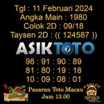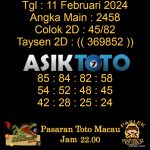 Prediksi Togel Asiktoto Toto Macau Jam 00.00 11 Februari 2024