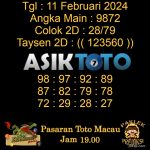 Prediksi Togel Asiktoto Toto Macau Jam 22.00 11 Febuari 2024